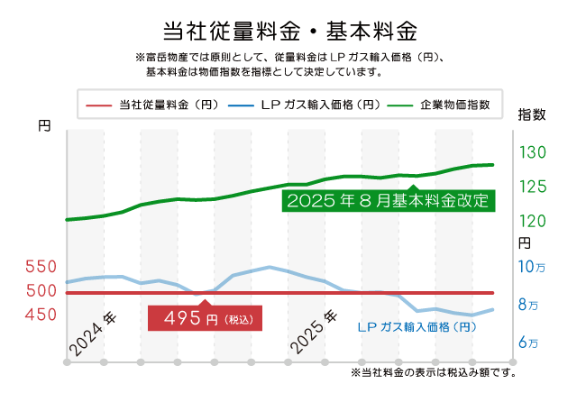 全戸統一料金でご提供!! これまで、プロパンガスの価格は不明瞭とよく言われてきました。各家庭で価格が違ったり、告知なく料金が上がったり…。